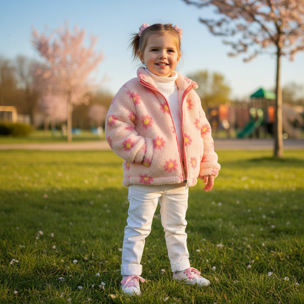 It features long sleeves, a smooth zipper front, and a playful printed design — perfect for everyday adventures and chilly days alike!